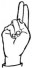 На ћирилици написано ЛАБУДА АВРАМОВИЋ састоји се из 15 слова [?]. Исписано ћириличном једноручном азбуком за глувонеме: